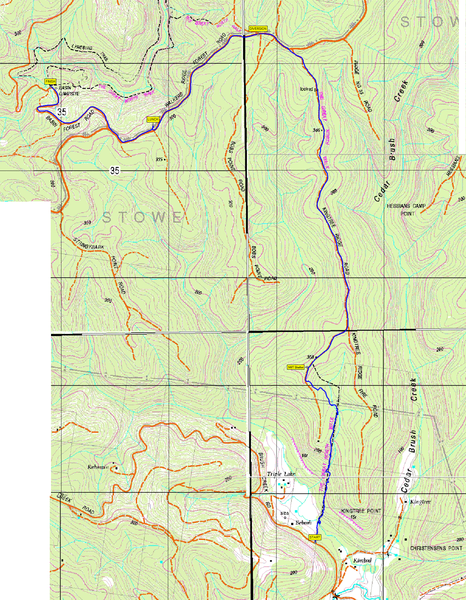 The first down was to the Pool of Siloam with an impressive waterfall. From there, it was up to Golf Links Lookout, the first of many magnificent views of total whiteout. Pressing on, we reached the Fairmont Resort where we paused for a damp morning tea beside a giant rainbow slide (not in use at the time). From here, the track skirts around the resort and enters some lovely bush where we were lucky enough to see 2 lyrebirds foraging.