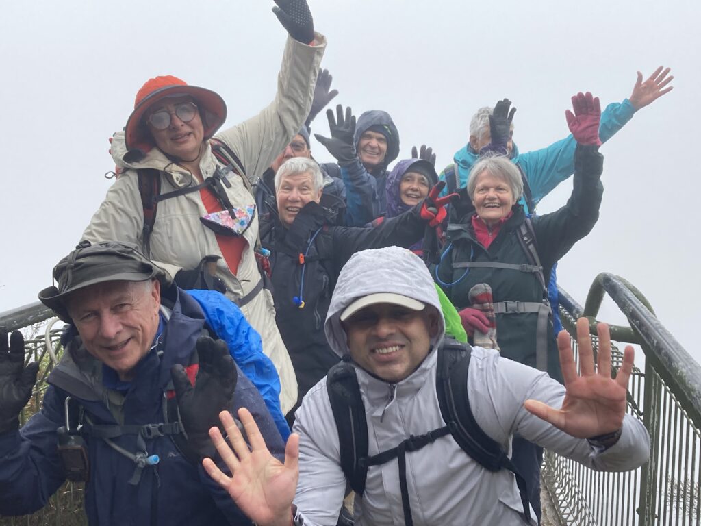 Chilly temperatures, thick enveloping fog and a high potential for rain saw 10 walkers arrive at Wentworth Falls Station well prepared with multiple layers of clothing topped with a waterproof shell. All sensible precautions.