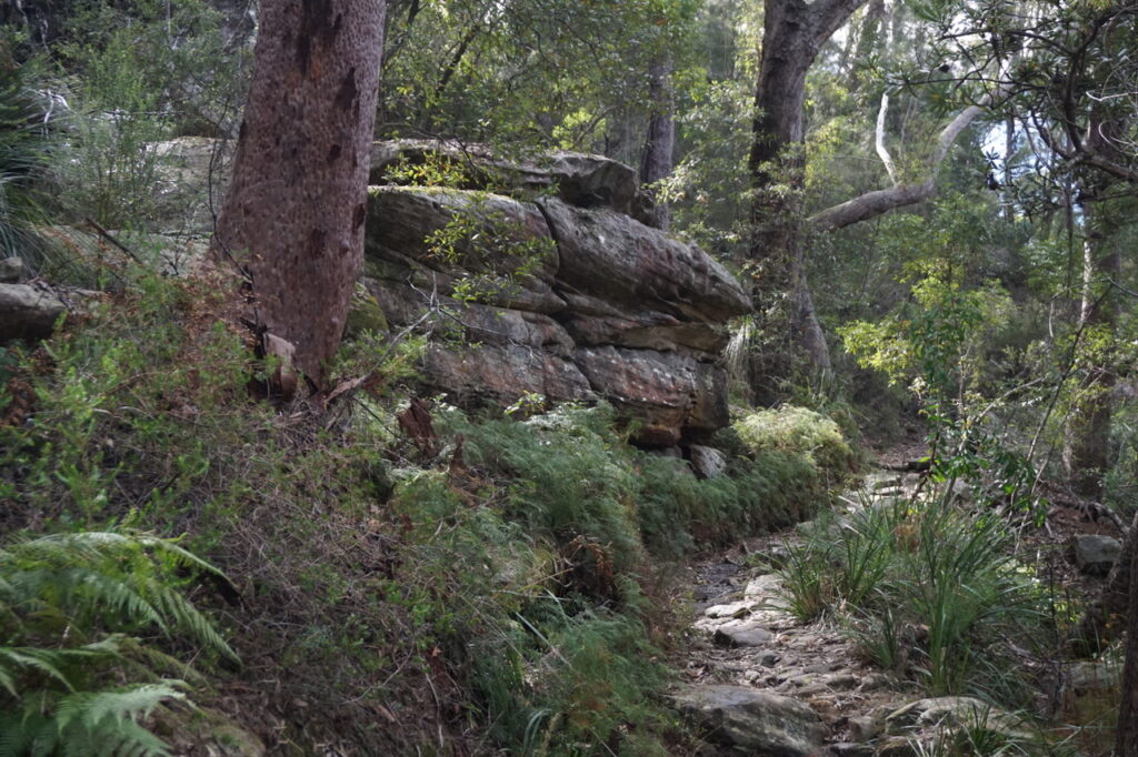 There were a lot of downs and a lot of ups on this walk, but the track has been solidly made featuring sandstone steps and stepping blocks. At times, the bush has even been trimmed to keep the track clear of overhanging bushes.